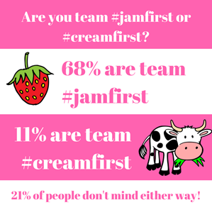 Cream first wasn't as popular as jam first, but the people who voted for it were very steadfast in their support for #creamfirst - "anything and anyone else is just plain wrong" one person was heard to say! The logic behind this was:
